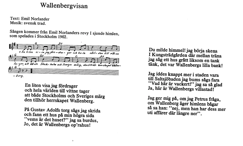 Redan 1902 sjöngs det i Wallenbergvisans första vers: