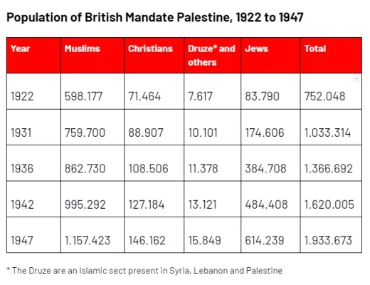 År 1929 var den sammanlagda balansen i den judiska emigrationen sedan 1880 följande: Av de cirka 4 miljoner judar som under denna period emigrerade från central- och östeuropa, begav sig 120 000 till Palestina (några av dessa endast tillfälligt), jämfört med 2,9 miljoner som reste till USA, 210 000 till Storbritannien, 180 000 till Argentina och 125 000 till Kanada. De judiska bosättarna i Palestina växte och hade vid 1929 nått 150 000 och stigit till över 400 000 år 1936.